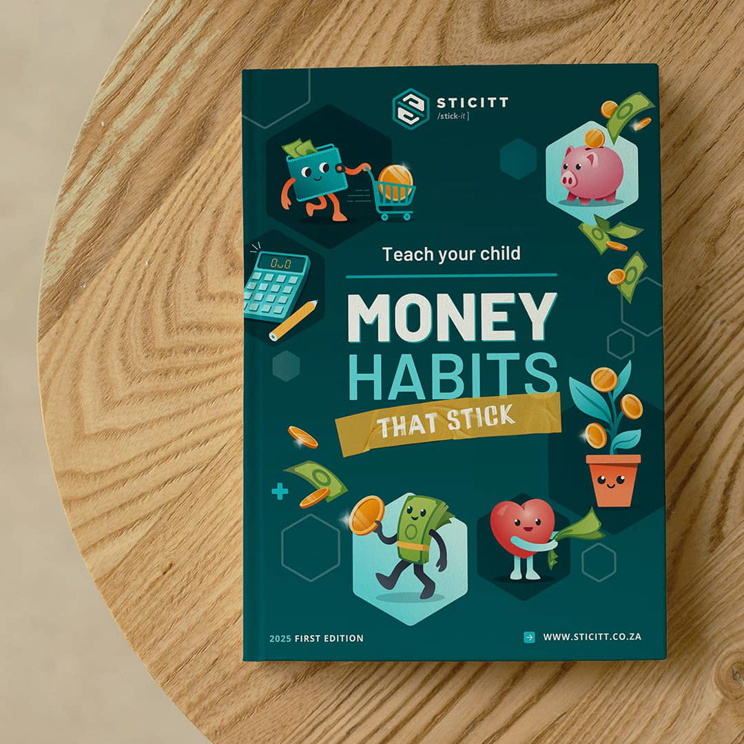 eBook cover design for Sticitt, a money habits book targeted to educating children. The designed characters were then used within the book's content.