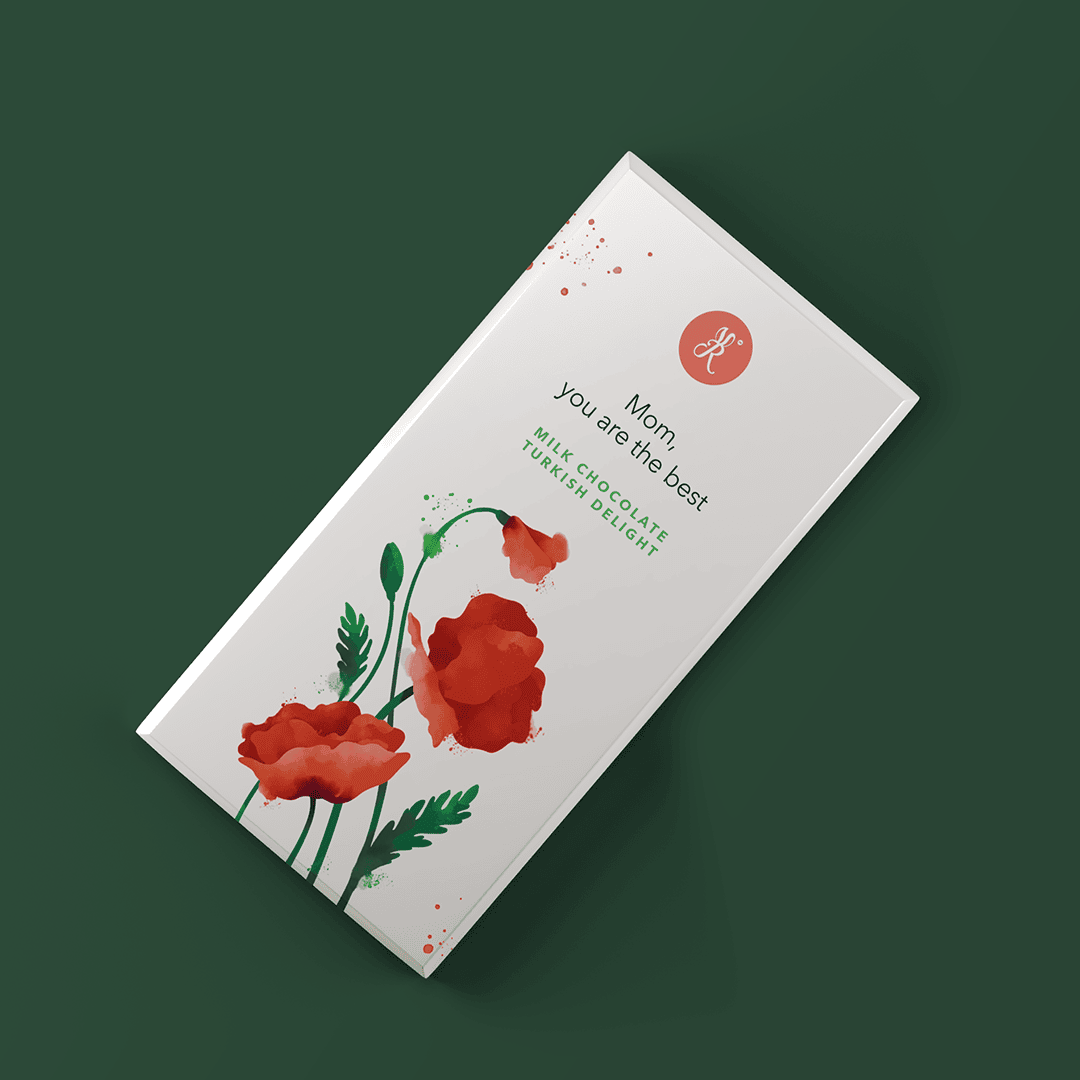 A collection of Mother's Day chocolate bars for Jack Rabbit Chocolate Studio
